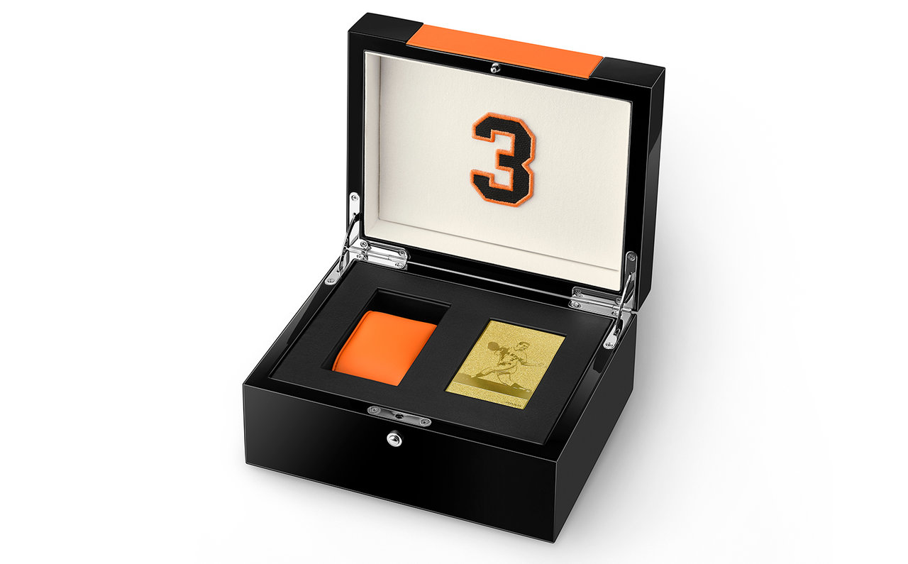 長嶋茂雄シグネチャーモデルにふさわしく、文字盤3時位置に、長嶋茂雄終身名誉監督の背番号であり、読売ジャイアンツの永久欠番としてその伝説を物語る「3」を配し、裏蓋には本人の直筆サインと17年間の公式戦打撃成績が刻印される。カラーリングは、読売ジャイアンツのチームカラーを採用。チタン製ケースとブレスレットは、DLC(ダイヤモンド・ライク・カーボン)加工によってオールブラックに仕上げられ、ベゼルや文字板にはアクセントカラーとしてオレンジが配された。