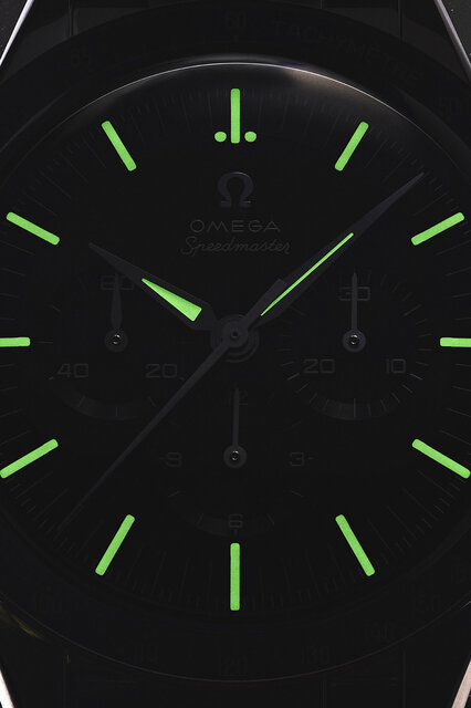 ダイアルとリューズにヴィンテージのオメガロゴがあしらわれており、本モデルが伝統に裏打ちされたスペックとストーリーを持つことを示している。さらにケースバックには、シーホースのメダリオンが施され、“SPEEDMASTER”、“THE FIRST OMEGA IN SPACE”、“OCTOBER 3, 1962”の文字が刻印されており、“宇宙に行った初めてのオメガ”、ファースト オメガ イン スペースの魅力を現代へ繋げるモデルであることが強調されている。