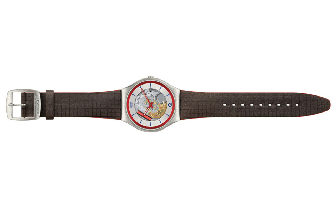 この“Q”をモチーフとした限定ウオッチは『007/ノー・タイム・トゥ・ダイ』のコスチューム・デザイナー、スティラット・アン・ラーラーブ(Suttirat Anne Larlarb)氏とともにデザインされた。ベースモデルはSS製の「スキンアイロニー(SKIN Irony)」。特徴は、サンブラッシュダイアル越しに姿を見せるムーブメントのメカニカルな印象、レッドをあしらった針とシャープなエッジだ。また、6時位置には「Q」の文字と、ブラウンレザー製ストラップにはタータンチェック柄が施され、“Q”というキャラクターが持つ伝統と未来的な革新の融合が表現されている。