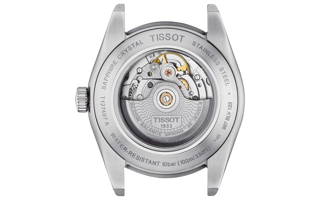 機械には、最長80時間のロングパワーリザーブを実現した「パワーマティック 80」にシリコン製ヒゲゼンマイが搭載され、高い耐磁性を実現したティソのフラッグシップムーブメント「パワーマティック 80 シリシウム」が採用されている。金曜日の夜に外しても月曜日の朝まで動き続ける実用的かつプレミアムなムーブメントだ。