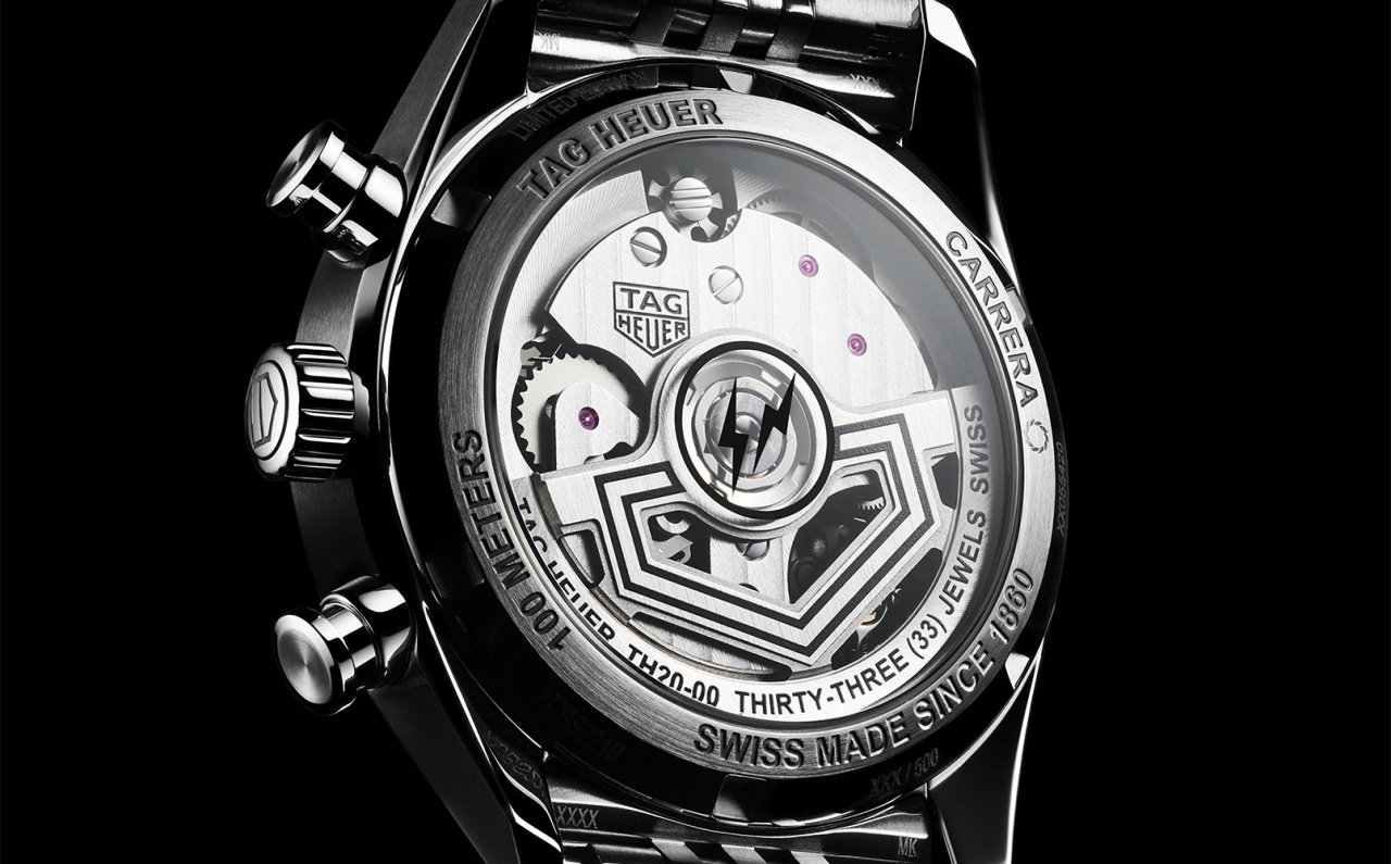 ケースバックには勝利の冠が刻印されている。これはフォーミュラ1の黄金時代、ジャック・ホイヤーが優勝ドライバーたちにゴールドのカレラを贈った伝統に由来するもので、今や成功のシンボルとして認知されている。