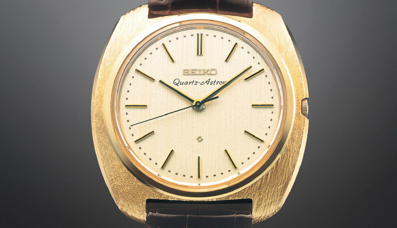 1969年12月25日、セイコーは世界初のクオーツ式腕時計「セイコークオーツアストロン35SQ」を発表し、世界を驚かせた。月差±5秒以内という高い時間精度を実現し、腕時計の歴史に「クオーツ革命」をもたらしたからだ。また、独自に開発した音叉型水晶振動子、オープン型ステップモーターをはじめ、特許権利化した技術を公開することで、アナログクオーツウオッチの世界的普及に大きく貢献し、現在においてもクオーツ腕時計の世界標準に認定されている。2014年には時計技術に大きな改革を実現したことが評価され、日本機械学会によって「機械遺産」に、2018年には国立科学博物館によって「未来技術遺産」に、それぞれ登録されている。