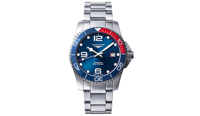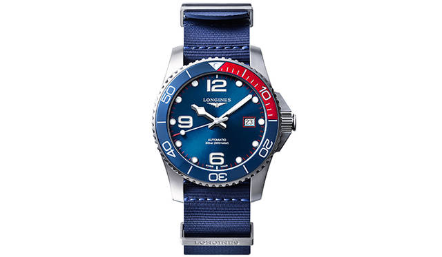 このモデルは、1999年よりロンジンが提唱するブランドスローガン「Elegance is an Attitude」の20周年を記念した貴重なアイテム。2019年6月には日本限定モデル第1弾として女性に向けたウオッチが発表されたが、その第2弾となる今回のメンズウオッチのベースには、内村氏自身も気に入っているダイバーズウオッチ「ハイドロコンクエスト」が選ばれた。内村氏のこだわりがふんだんに詰まった、このスペシャルコラボレーションモデルでまず目を引くのは、ベゼルやミニッツサークル、デイト窓枠など随所に配されたアクセントカラーのレッドだ。勇気や勝利といった意味を持つレッドは、内村選手が最も好きな色であり、その次に好きな色というブルーがダイアルにあしらわれた。