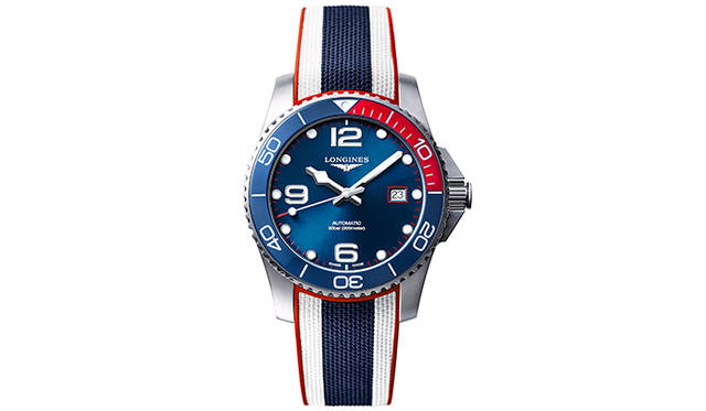ケースバックには、内村選手のサインとシリアルナンバーが刻印され、300メートルというダイバーズウオッチとしての高い防水性能も備わる。さらに内村選手の「気分によって付け替えができるようにしたい」という要望から、ステンレススチール製ブレスレットのほかに、トリコロールカラーのラバーストラップおよびNATOタイプストラップが付属し、ロンジン初のインターチェンジャブルシステムにより、ワンプッシュで付け替えできる仕様となっている。